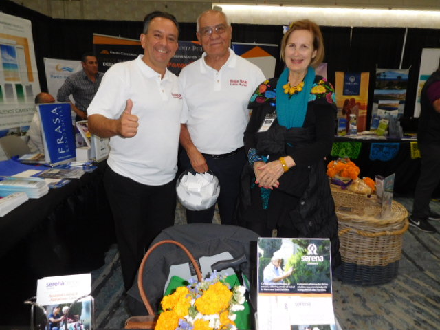 Miguel Angel Torres, one of his supporters, and Wendy Jane Carrel Assisted Living Consultant for Mexico at Serena Care booth