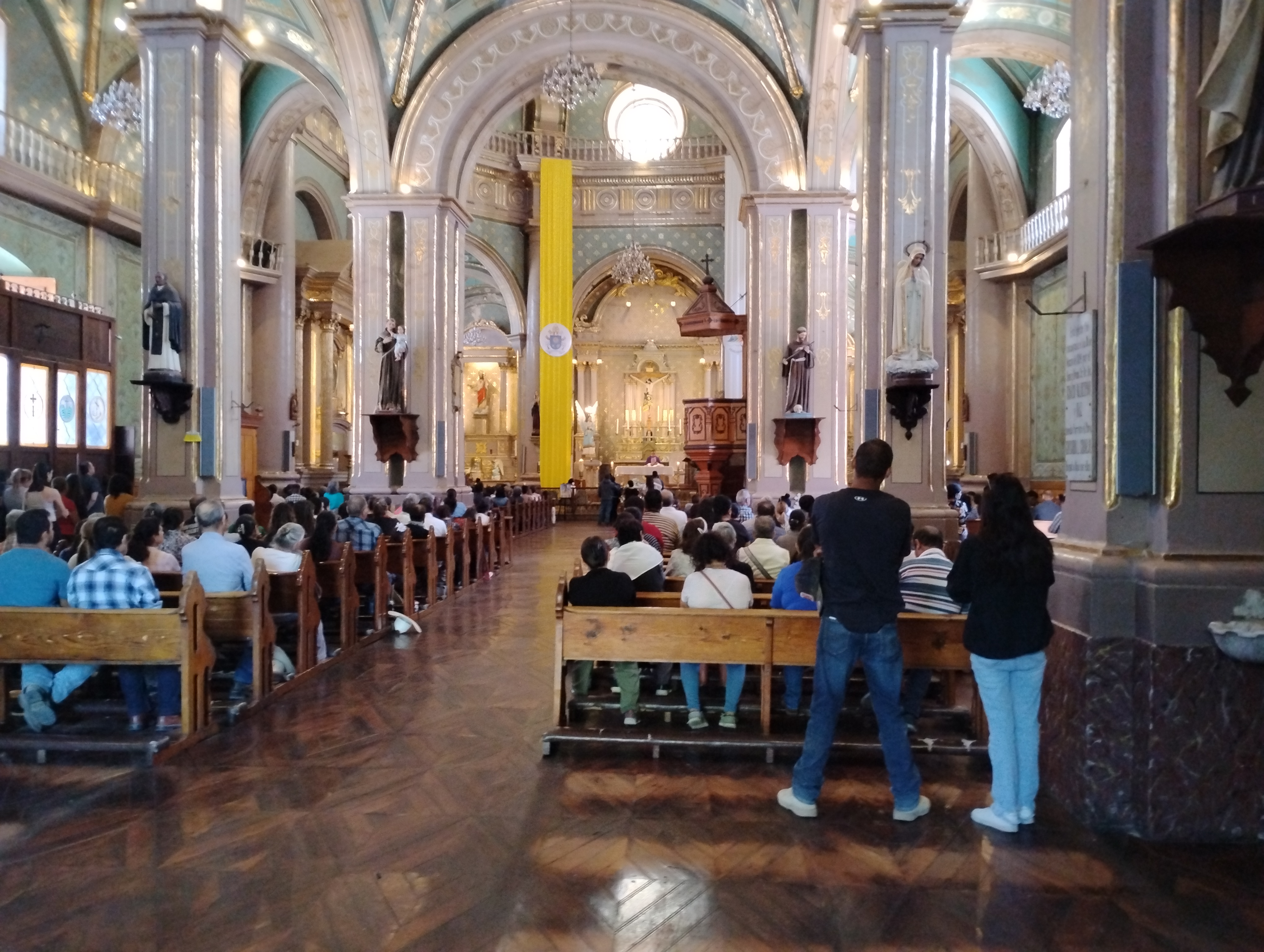 The beautiful baroque parish church has three magnificent domes adorned with frescoes. It is dedicated to the patron saint of the city, Lord of the Saltpeter. According to city legend a group of older adults saw a miraculous appearance of the Lord on the parish spot before the church was built around 200 years ago. The colors inside are gold, light pink, and light blue.
