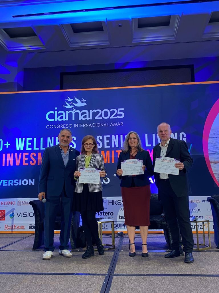 In the photo below: Rafael Garcia Turban international developer, Oliver Sahlmann, Mac Kroupensky, Wendy Jane Carrel at CIAMAR Mexico and LatAm Senior LIving Investment Summit 2025