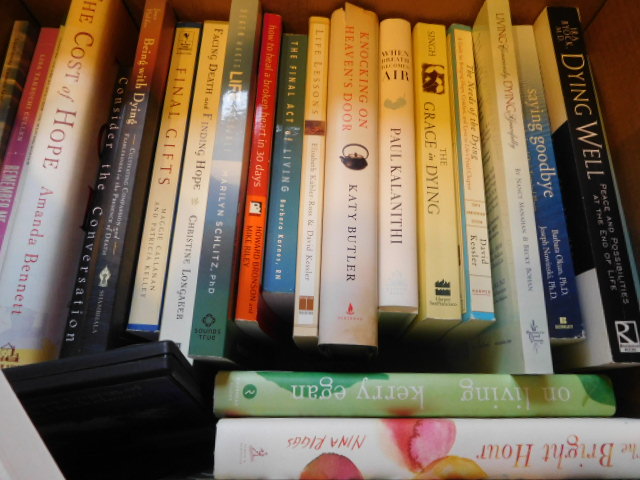 One of the surprises for me was that Santa Barbara Death Cafe provides a mobile library. They bring books in a large carton each month for participants to check out!! I love this idea!!